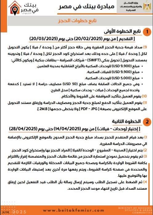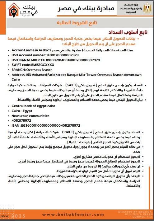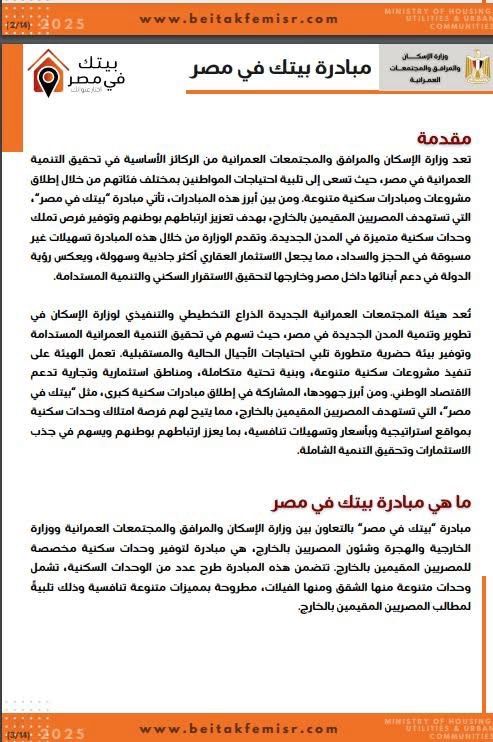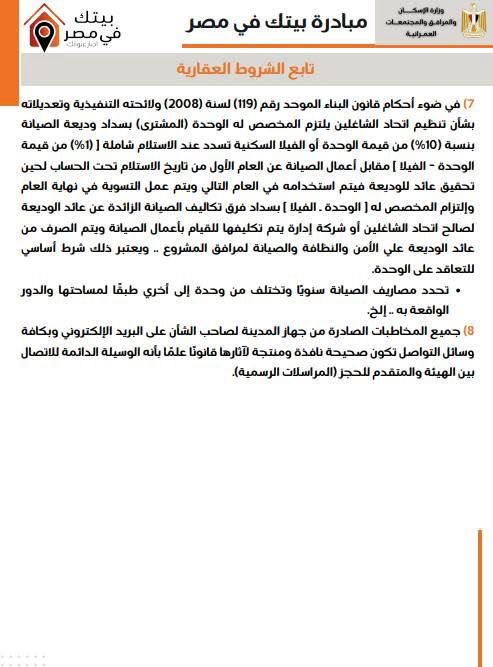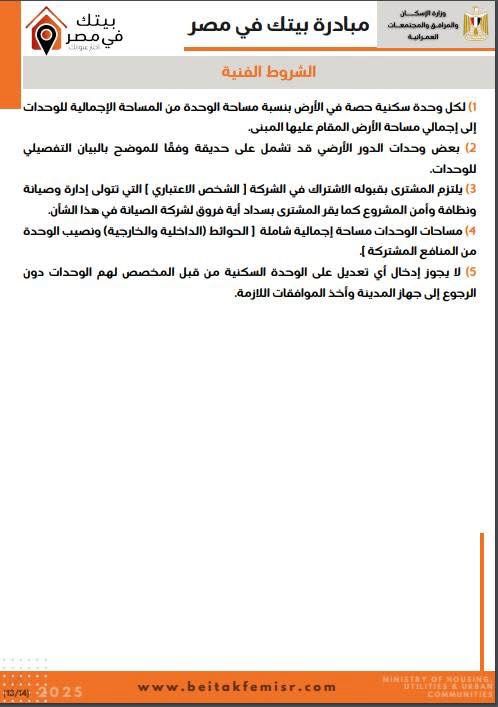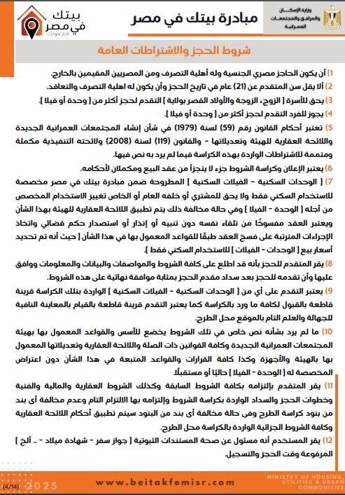 كراسة شروط مشروع إسكان مبادرة بيتك في مصر للمصريين بالخارج (خاص)
