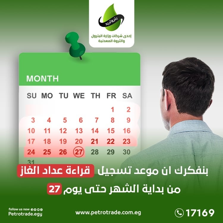 يمكن للمشتركين تسجيل قراءة عداد الغاز الطبيعي لشهر مارس 2025 خلال الفترة من 1 مارس حتى 27 مارس عبر المواقع الرسمية لشركات الغاز، وذلك من خلال الروابط التالية:
