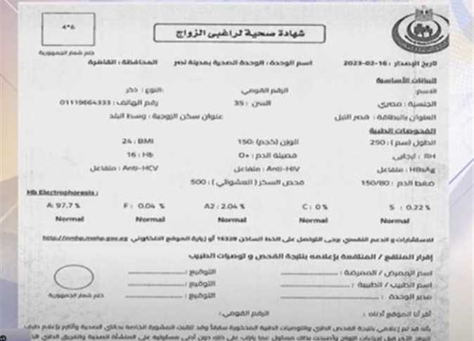بعد إجراء التحاليل، سيحصل المقبلون على الزواج على وثيقة مطبوعة تحتوي على نتائج الفحوص، مع أرقام تسلسلية وQR كود مسجل بوزارة العدل. هذه الوثيقة مطلوبة كجزء من مسوغات الزواج، ولا يمكن استلام النتائج إلا من صاحب التحليل شخصياً أو من ينوب عنه بتوكيل رسمي.