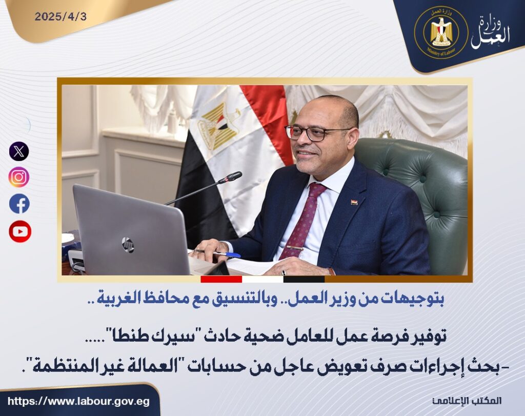 توجيهات وزير العمل: توفير فرصة عمل للعامل ضحية حادث “سيرك طنطا”