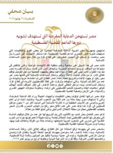 وفي ختام البيان، أكدت مصر أنها ستواصل جهودها على كافة المستويات من أجل: