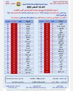حالة الطقس اليوم 10 أغسطس 2025 في مصر