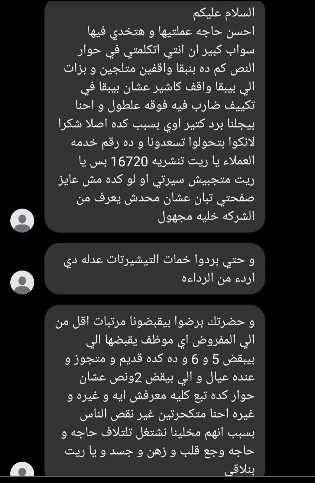 صور.. رسائل الشكاوي التي وردت من بعض العاملين بسينابون