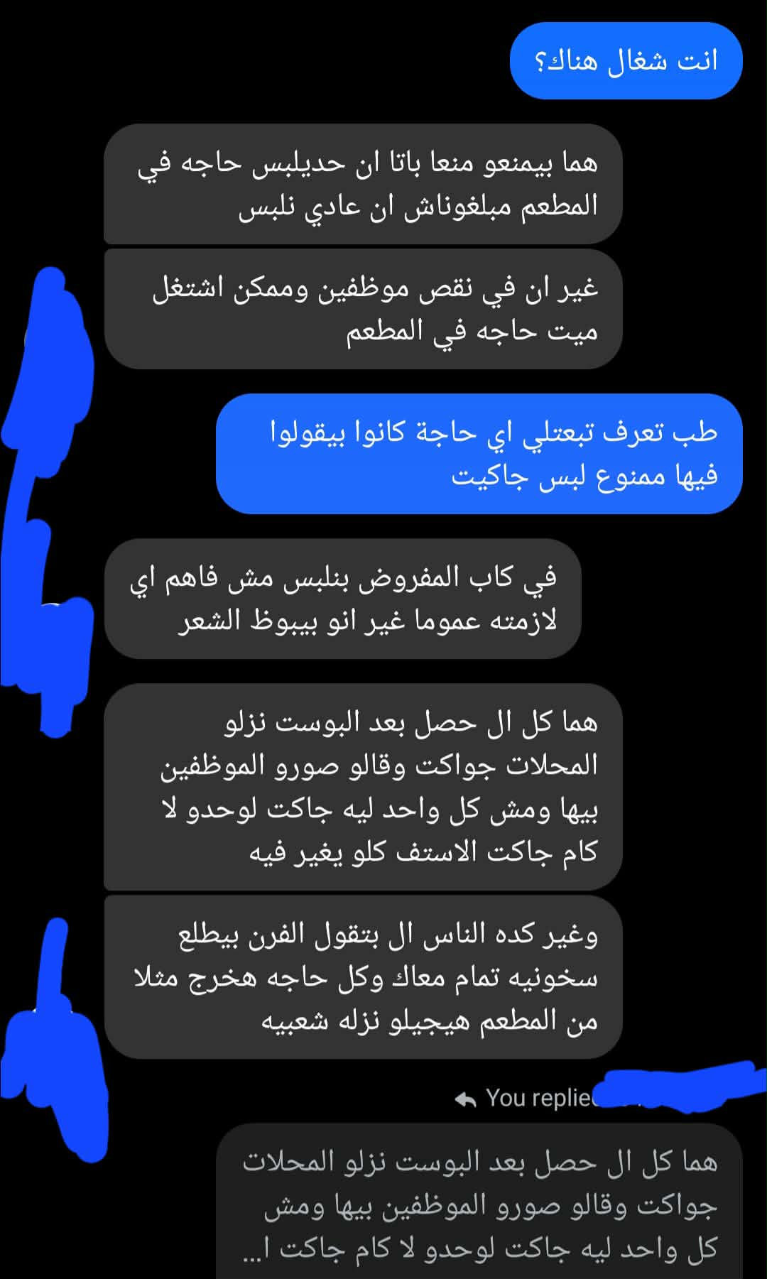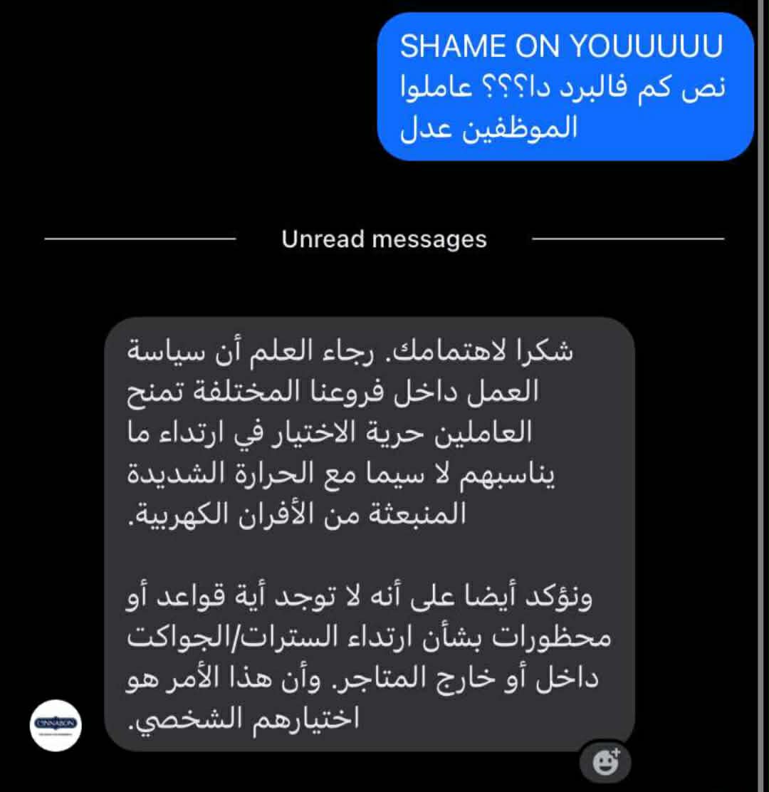 وهو الرد الذي فندته الشكاوى والوقائع، حيث تساءلت “فرح”: “إذا كانت الأفران هي السبب، فلماذا يُجبر (الكاشير) وموظفو الصالة ومن يعملون بعيداً عن المطبخ على ارتداء النصف كم؟!”.